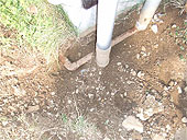 宅地内の土盛りした部分に取り付け、1M以上の土中にアース・備長炭等を埋設致しました。