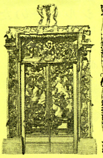 ここでは、門の制作を依頼された経過から話し、門の構想はロダンが心服していたダンテの神曲物語(地獄篇)の詩篇から始まり、その構図はフィレンツェの礼拝堂の扉に順応して対照的な図柄を考えましたが、次第に自由な構図になり、統一的から流動的になりました。