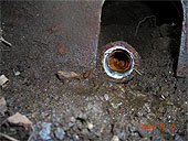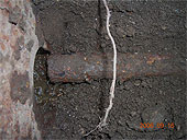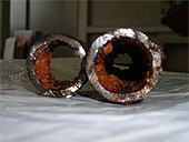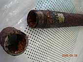 | ディレカを取り付ける為にはずした既設の鋼鉄管の中はこんなに錆びています。(施工後25〜30年前後経過) |