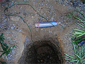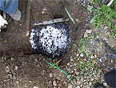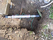 宅地内の土盛りした部分に取り付け、1M以上の土中にアース・備長炭等を埋設致しました。