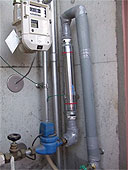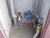 | マンションのパイプスペースです。メーターBOXの近くで給水管の一部と替えて取り付けると家の中の水はお風呂も洗濯もトイレもキッチンも全てディレカの水になりました。もちろん、飲料水を買いに行って持ち上げることもなくなりました。 |